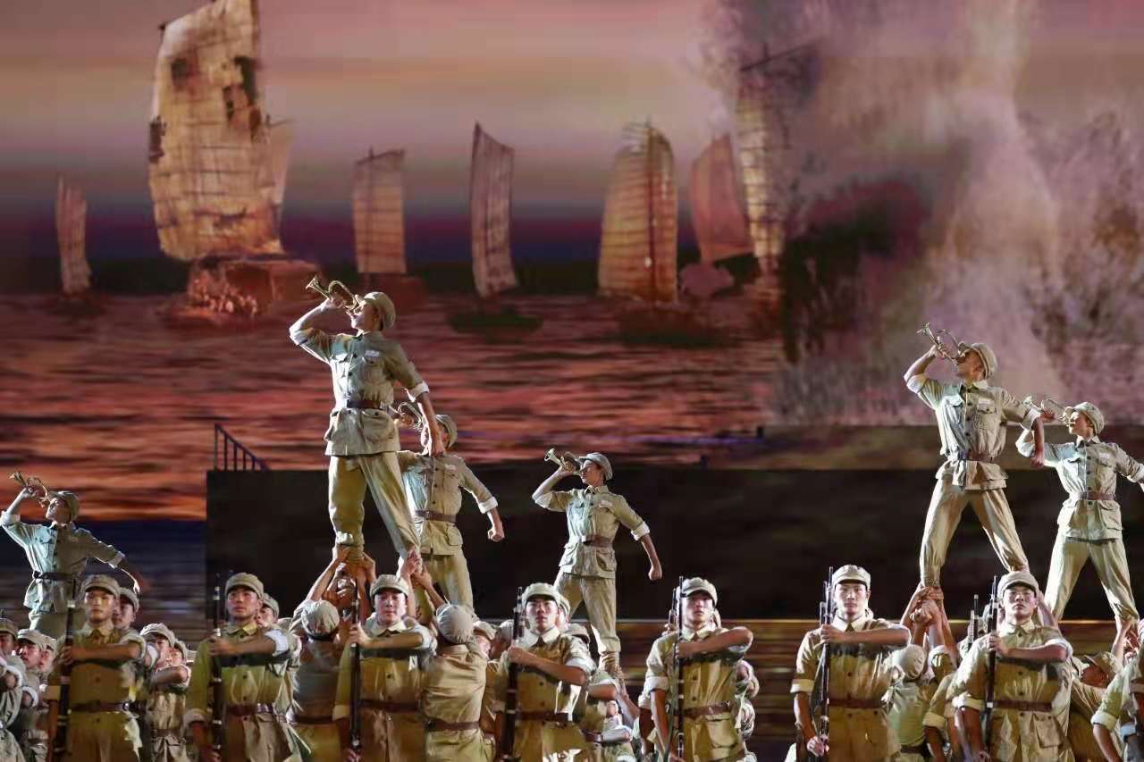 为隆重庆祝中国共产党成立一百周年,7月1日晚,中央电视广播总台播出了庆祝中国共产党成立100周年文艺演出《伟大征程》。河南少林塔沟武校1200余名学员参加了七个节目的演出,其中《向前向前向前》、《战旗美如画》、《新的天地》作为整台晚会的重要看点,赢得了党和国家领导人、各界人士代表和现场两万余名观众的掌声。