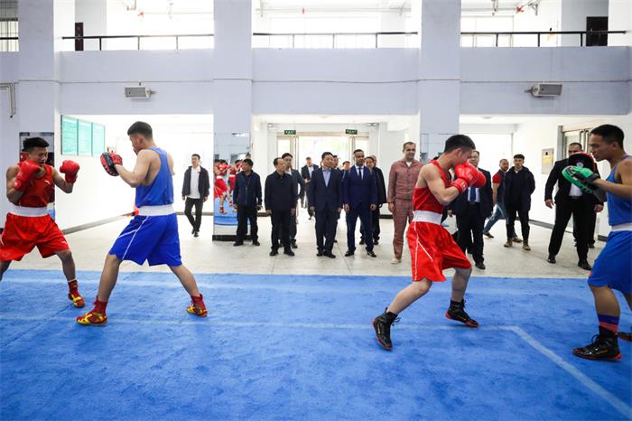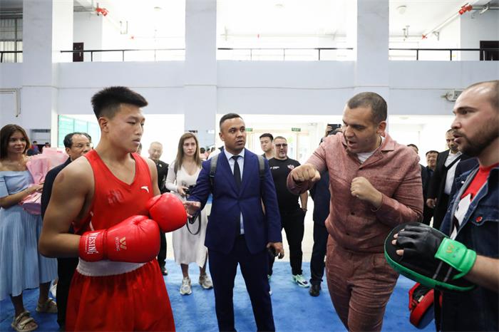 国际拳击联合会主席奥马尔·克拉姆列夫来塔沟武校参观