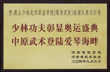 首届世界传统武术节迎宾活动大型武术表演特等先进单位