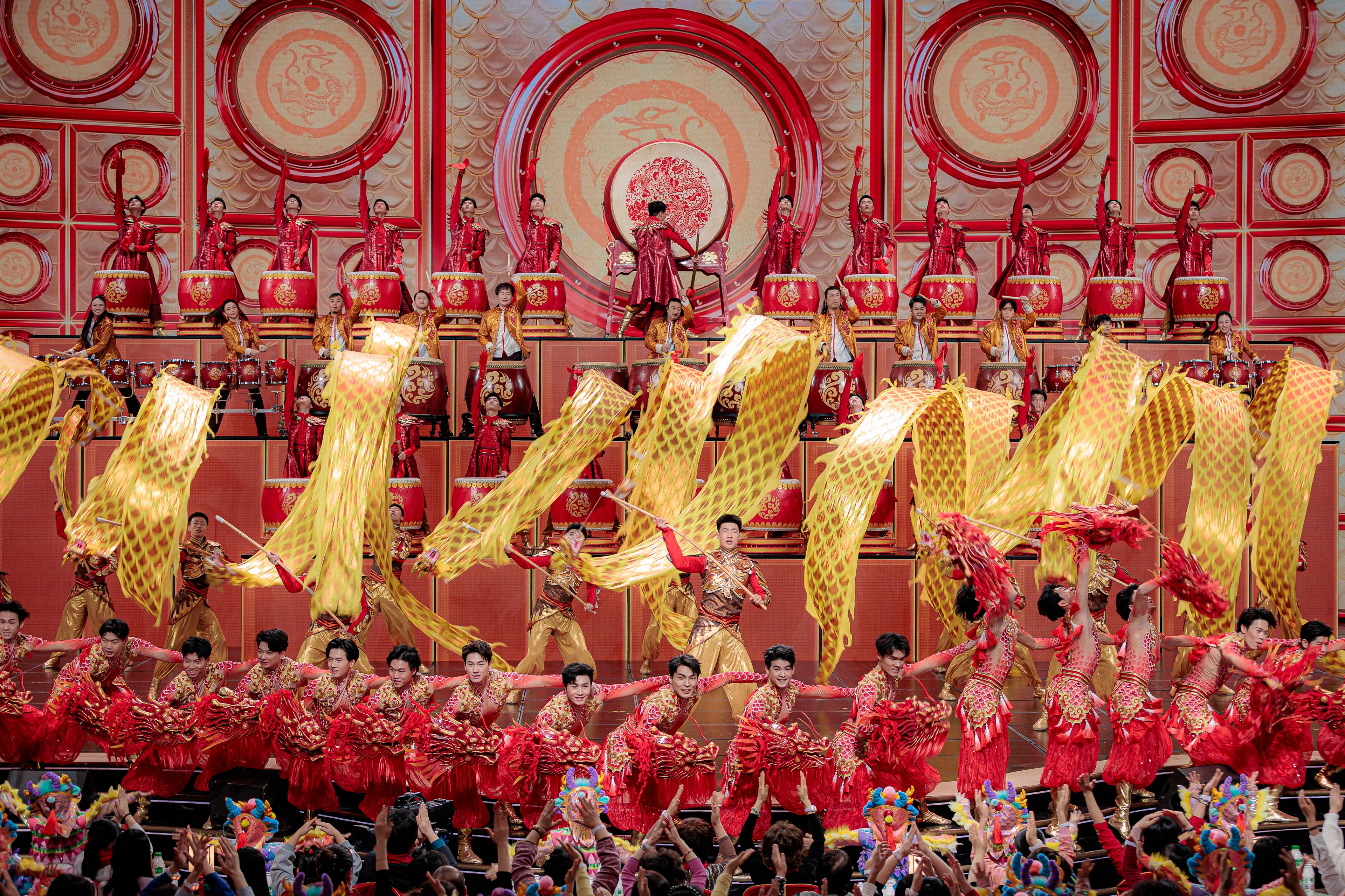 学员参加2024中央广播电视总台春节联欢晚会演出《鼓舞龙腾》
