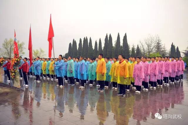 继承先烈志 誓做栋梁人 4月4日上午,为缅怀革命先烈,郑州少林塔沟教育集团第一团支部三百名青年团员冒雨前往登封市烈士陵园,为曾经在这片土地上洒热血的革命先烈祭献花篮。 仪
