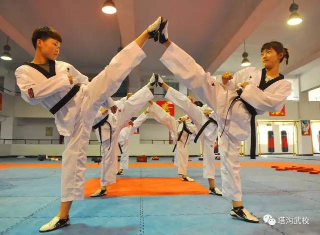 一个字,帅!正是我选择这个项目的原因...... 在塔沟武校开设的所有武术专业中,似乎没有比跆拳道更能展示英姿飒爽的帅气了! 与别的项目不同的是,在训练时,队员要