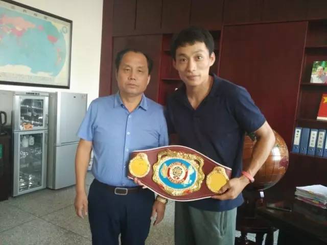 WBO拳王牛忠杰载誉回校 今天上午,塔沟武校新校区全体学生隆重集会,欢迎WBO大中华区拳王的超轻量金腰带得主、