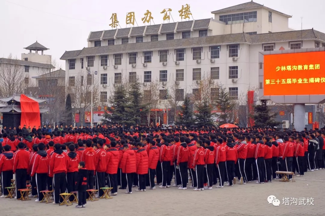 塔沟武校举行第35届毕业生揭碑仪式 2018年1月3日上午,少林塔沟武术学校第三十五届毕业生纪念碑揭碑仪式在新校区碑林举行。集团领导刘海科、刘海钦和各单位负责人及毕业班学员参加了仪式。