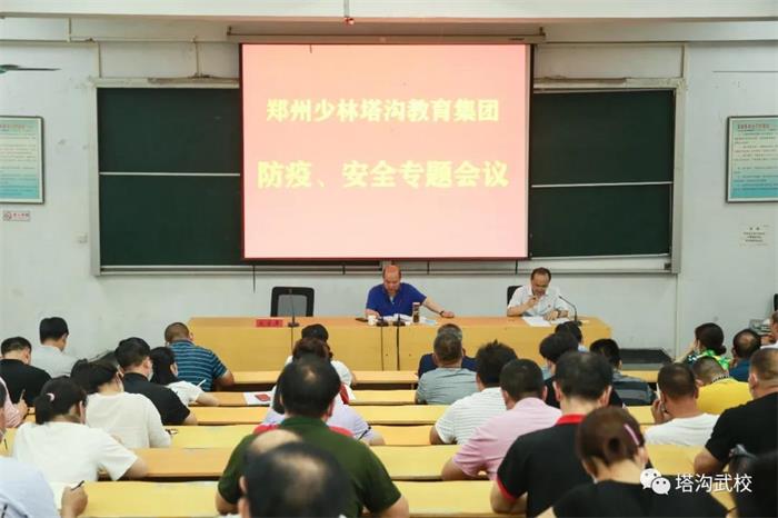 少林塔沟教育集团召开防疫、安全专题会议6月27日上午,少林塔沟教育集团防疫、安全工作专题会议在大禹校区一楼多媒体教室召开,各教学单位、处室负责人参加会议。会议由塔沟武校第一书记景国敏同志主持,集团董事