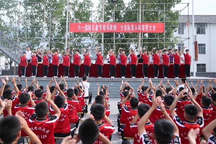 今天,塔沟武校举行了一场别开生面的宣誓大会 6月1日上午,塔沟武校分别在大禹校区和祖源校区举行“六一国际儿童节·少先队员入队宣誓大会”,2157名学生正式成为光